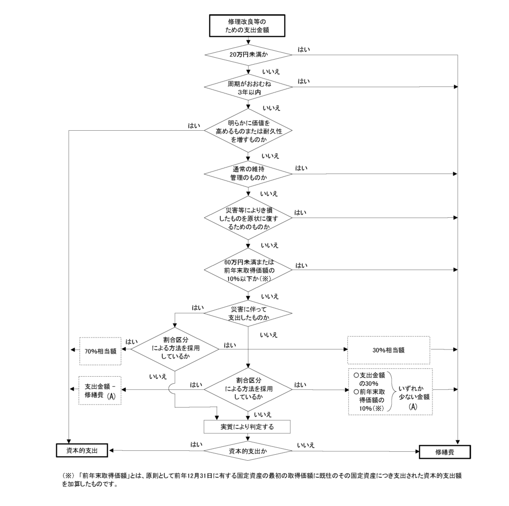 修繕費になるか資本的支出になるかは次のフローチャートで確認するといいわね。